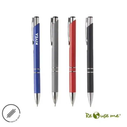 Lápiz confeccionado en Wheat Straw, pasta de tallo de trigo, un material sustentable que reduce el consumo de plásticos vírgenes. Los productos elaborados con este componente, son de fuentes naturales, y pueden tener un tono irregular debido a las diferencias naturales en el color y la textura del material. ver imagen. Tinta de color azul y apertura con sistema retráctil.