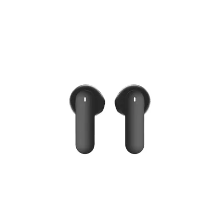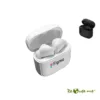 Auriculares inalámbricos estilo earbuds, fabricados en RABS. Cada auricular cuenta con un botón touch que permite subir y bajar el volumen, contestar y finalizar llamadas, reproducir y pausar música, cambiar a la siguiente o anterior canción.