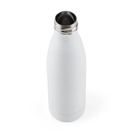Botella reutilizable de doble pared de acero inoxidable, esmaltado en su exterior con Powder Coating. Es ideal para mantener la temperatura de la bebida: mantiene 4 horas la bebida caliente y 8 horas la bebida fría. Su tapa está confeccionada en PP, acero inoxidable y silicona para evitar derrames de líquido. Producto libre de BPA. Reutilizable. Medidas: 25.5 cm x diámetro 6.8 cm. Capacidad: 500 ml. Incluye Gift Box confeccionada en cartulina Kraft.
