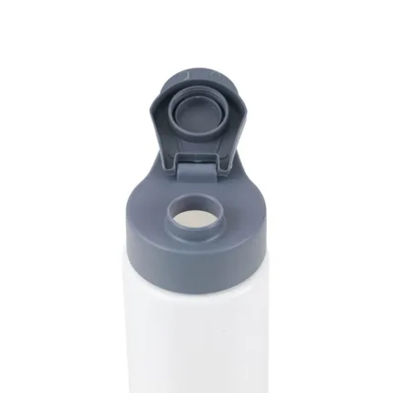 Botella reutilizable de PET con tapa de Polipropileno, cuenta con un agarre en la tapa para su transporte.  Producto libre de BPA. No es apta para bebidas calientes, lavavajillas ni microondas. Capacidad: 600ml.