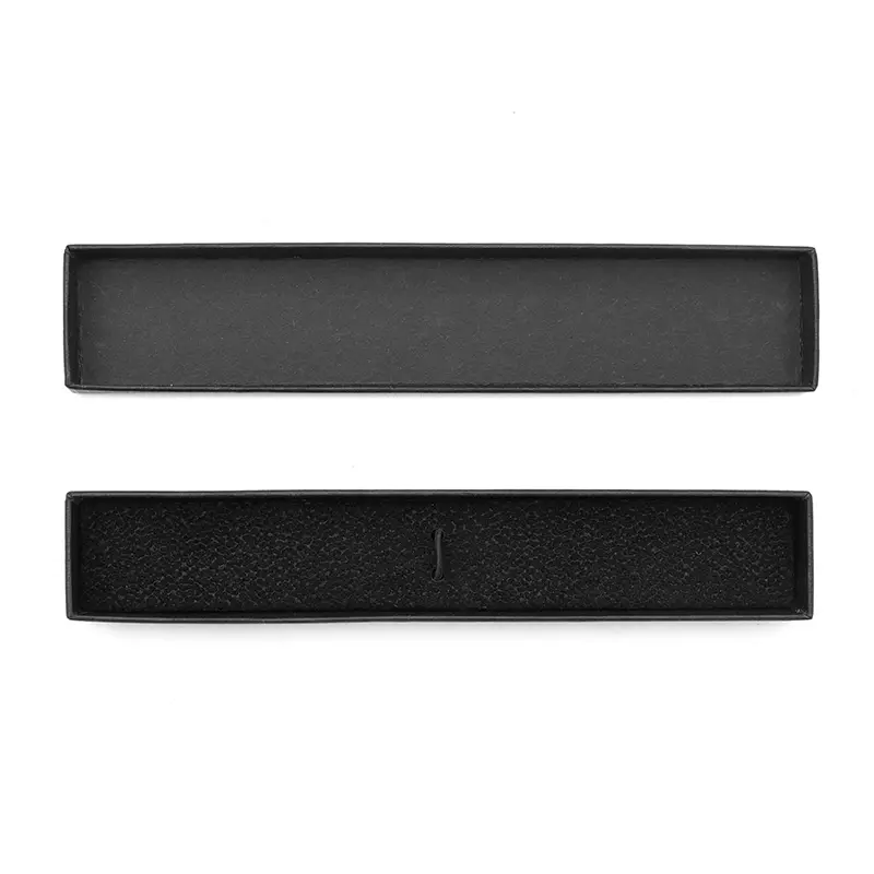 Caja individual para bolígrafos, ideal para presentar tu regalo de manera sofisticada y profesional. Diseñada en papel color negro y un tamaño de 16,3 x 3 x 2 cm, es compatible con la mayoría de las lapiceras estándar. Ligera y resistente, es excelente para aumentar el valor percibido del regalo.