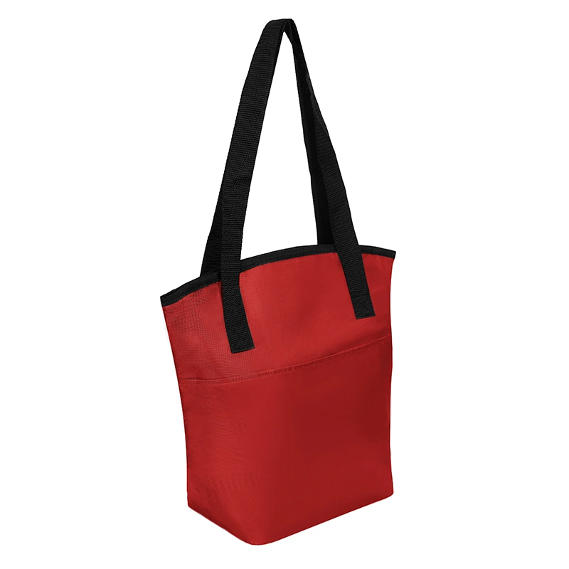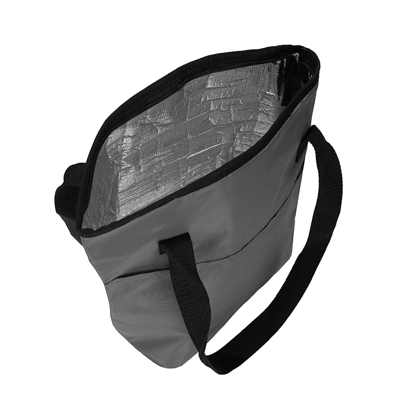 Cooler de Polyester 420D con compartimiento principal superior y bolsillo frontal. Posee interior en Aluminio y PE foam.