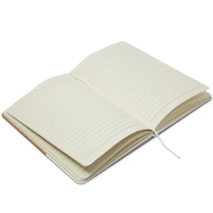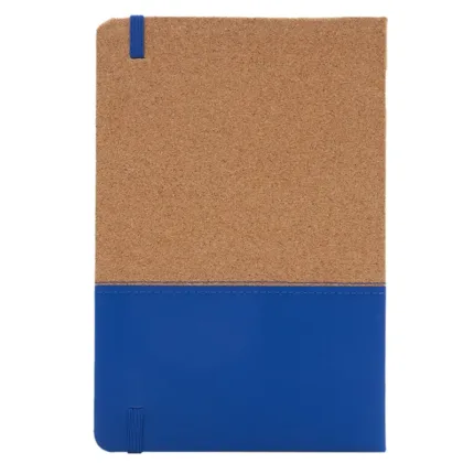 Cuaderno con tapa de corcho y PU. Cinta marca página y elástico de cierre. 80 hojas rayadas. Medidas: 14,5 x 21 cm. ReUseMe.