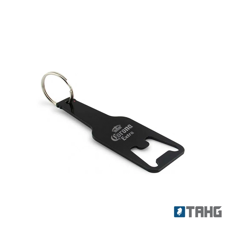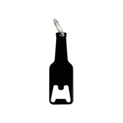 Destapador metálico compacto y resistente. Fabricado en acero inoxidable 420, ofrece una alta durabilidad y resistencia al desgaste. Cuenta con un diseño ergonómico, acabado en color negro y aro metálico tipo llavero que facilita su transporte. Es ideal para abrir botellas con tapa corona en reuniones, eventos o para llevar siempre a mano en el llavero.