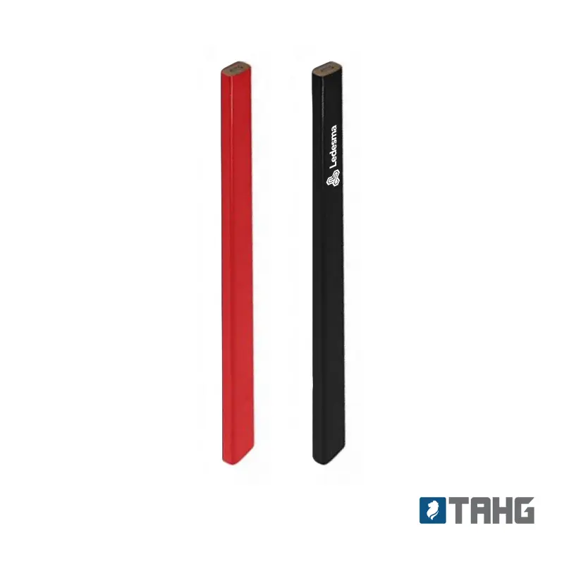 Lápiz grafito de carpintero de forma rectangular. Apto para múltiples superficies. Colores: Rojo o Negro. Mina HB. Medidas: 1,2 x 17,8 x 0,8 cm.