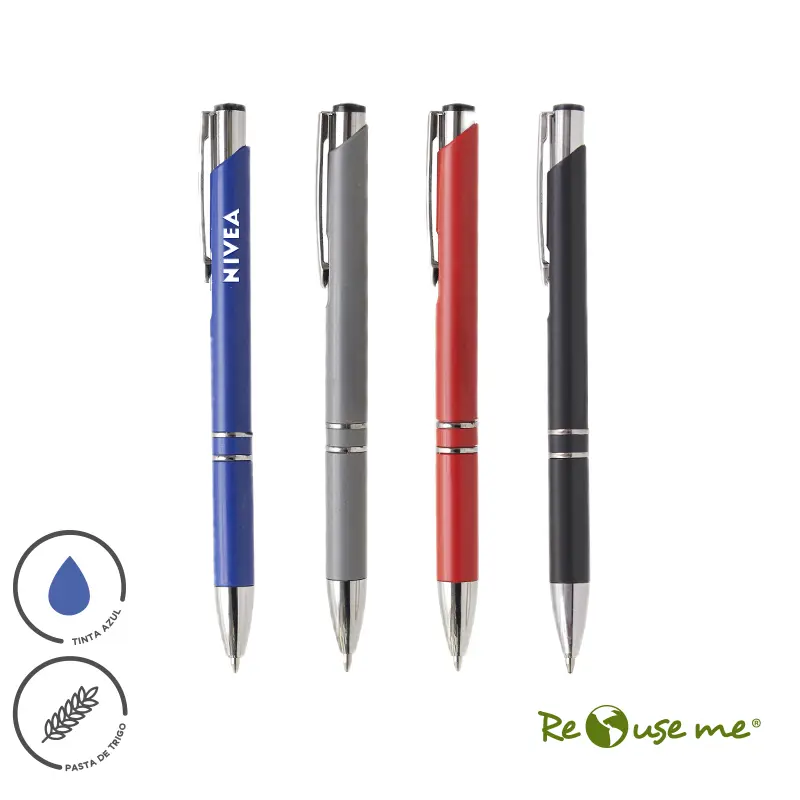 Lápiz confeccionado en Wheat Straw, pasta de tallo de trigo, un material sustentable que reduce el consumo de plásticos vírgenes. Los productos elaborados con este componente, son de fuentes naturales, y pueden tener un tono irregular debido a las diferencias naturales en el color y la textura del material. ver imagen. Tinta de color azul y apertura con sistema retráctil.