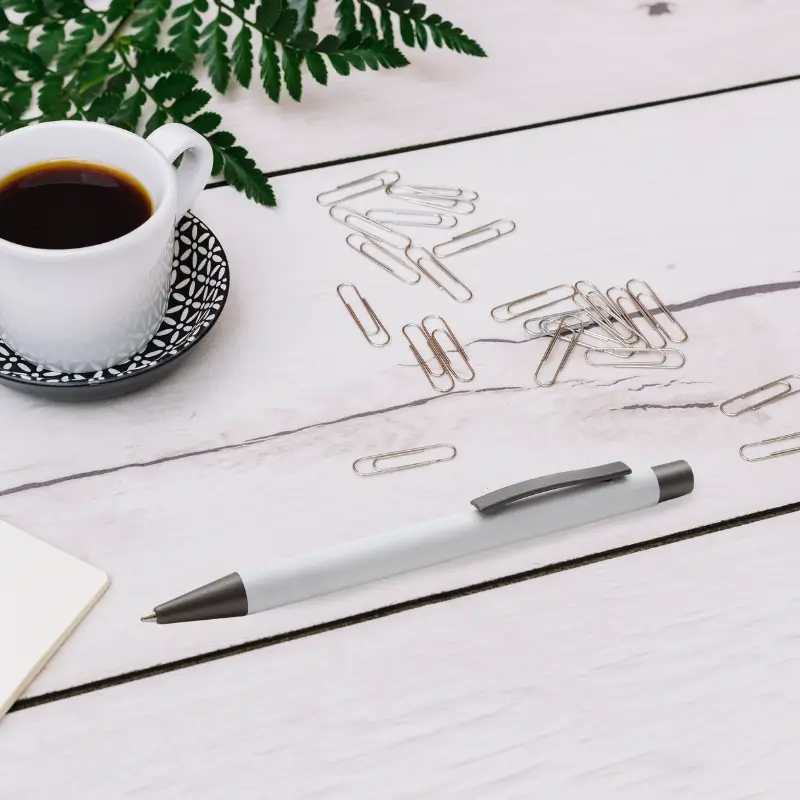 El Lápiz Omega está fabricado en metal, un material resistente y elegante que le otorga durabilidad y un diseño sofisticado.