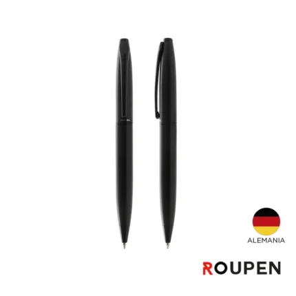 Lapiz de cuerpo metálico en acero con detalles en negro mate. Cuenta con tinta azul y apertura con medio giro. Medidas: 13,8 x 1,25 cm.