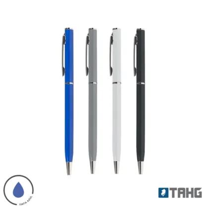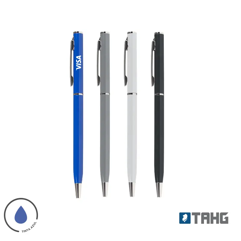Lápiz de metal. Diseño elegante. Con clip. Apertura medio giro. Tinta azul