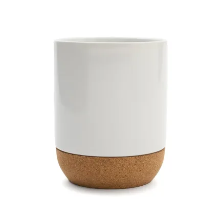 Mug confeccionado en cerámica y base de corcho, que aporta un toque natural.