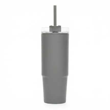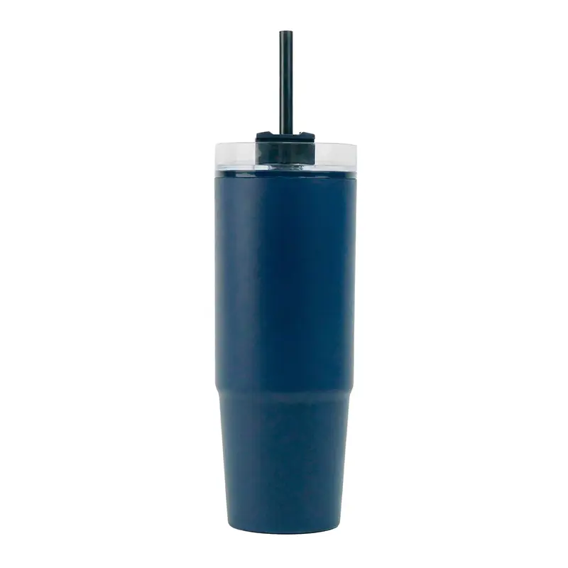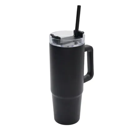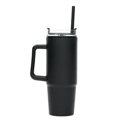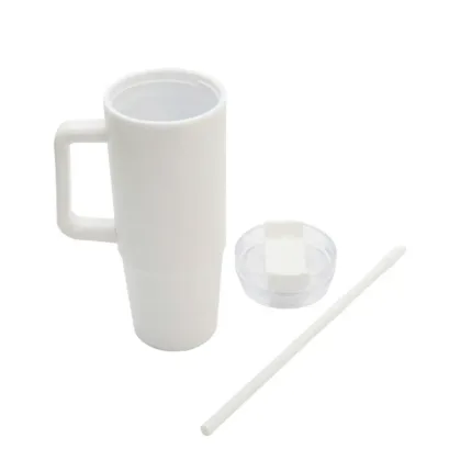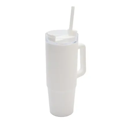 Mug térmico con asa y sorbete integrado. Hecho de polipropileno (PP), AS y silicona con doble pared. Es ideal para mantener tus bebidas frías o calientes mientras te mueves durante el día.
