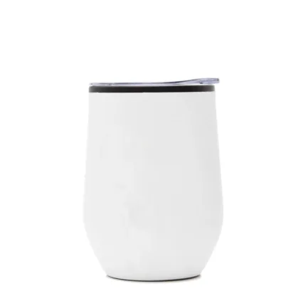 Mug térmico realizado en acero inoxidable esmaltado en su exterior, con interior de polipropileno negro y tapa cristal clear.