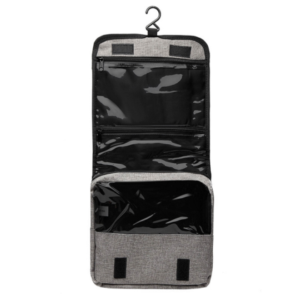 Necessaire de baño realizado en polycanvas. Gancho colgante para poder desplegar. Cierre con velcro. Medidas: Cerrado: 24 x 24 cm. Desplegado: 50 x 24 x 7 cm