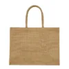 Tote bag fabricada en canvas de 320gsm (10 oz) combinada con yute laminado. Ideal para quienes buscan una bolsa amplia y resistente para transportar compras, libros u otros objetos de forma práctica y ecológica. Medidas: 35 x 46 x 19 cm. ReUseMe