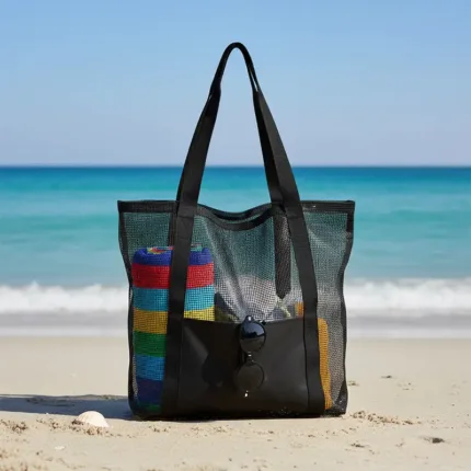 Bolso tote versátil fabricado con malla RPET y poliéster 600D, materiales reciclados y duraderos. Cuenta con un amplio compartimento principal, asas reforzadas para mayor comodidad y resistencia, estructura ligera que facilita el transporte, y diseño de red que combina estilo moderno con practicidad. Es ideal para llevar compras, usar en la playa, transportar artículos del gimnasio o como bolso diario, ofreciendo una opción ecológica, práctica y elegante.